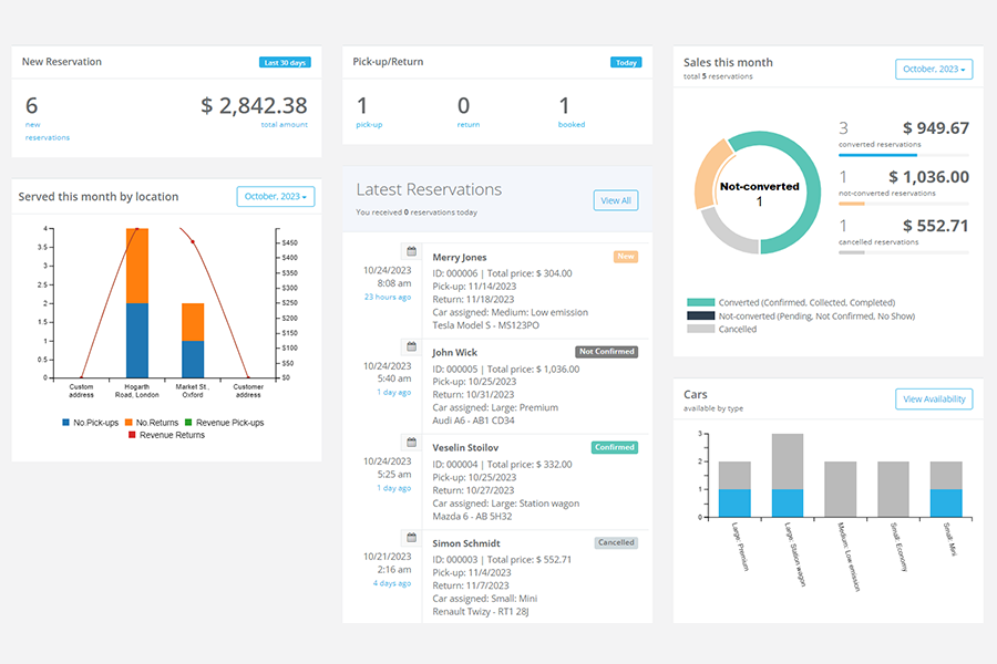 Gain access to a user-friendly dashboard offering valuable insights into rental operations, enabling you to make well-informed decisions regarding fleet management, pricing strategies, and marketing efforts.