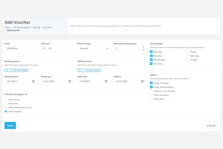 Make the most of your fleet's revenue potential by generating distinctive seasonal pricing structures. Our car rental system automatically calculates appropriate rates based on the dates provided by your clients.